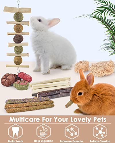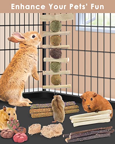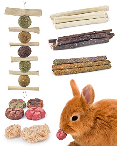 Bissap Bunny Chew Toys 25PCS, Natural Bamboo Apple Stick Timothy Hay Loofah Flower Hanging Chewing Treats for Rabbit…