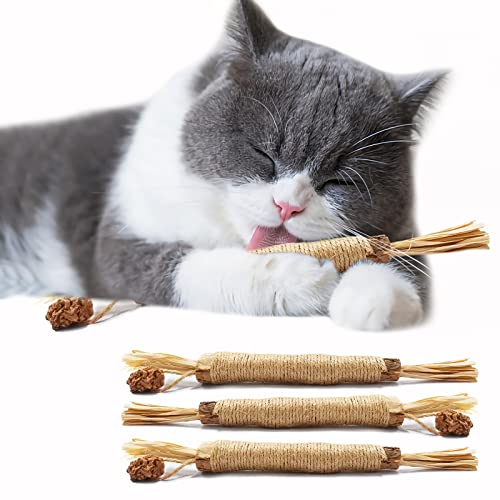 【Natural Material】 Our silvervine sticks are made of quality and edible pure natural silvervine sticks, silvervine fruit, raffia and sisal rope, without any harmful substances, which is no harm to your favorite kitten while can keep them fit.
