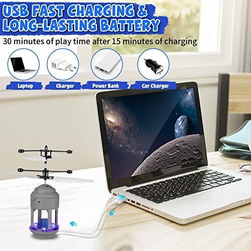 ✈️【EASY-TO OPERATE FLYING TOYS FOR CHILDREN】After the accessories are installed according to the instructions in the manual,press the transmitter with your finger to pop out the induction device.The induction is ejected to the middle of the drone to trigger the switch,and the drone will fly upwards.Drone toy for kids will hover in the air to a certain height and drop,don’t worry about the drone toy flying away.
