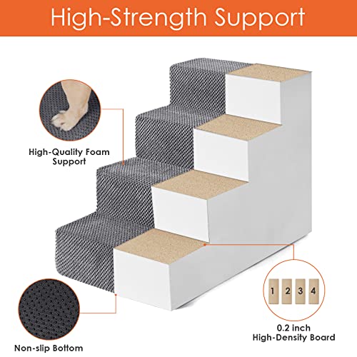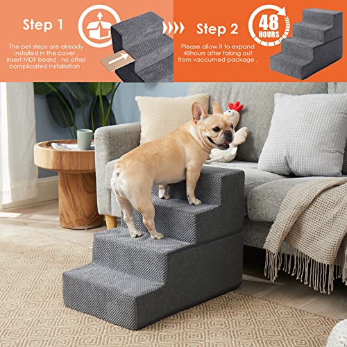 EHEYCIGA Dog Stairs for Small Dogs, 4-Step Dog Stairs for High Beds and Couch, Folding Pet Steps for Small Dogs and Cats…