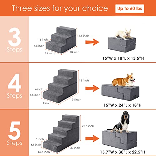 Multiple Step Sizes – Suitable for most pets. This dog stair has 3 steps, 4 steps and 5 steps to choose. It can be used for a long time, you don’t need to replace them often.