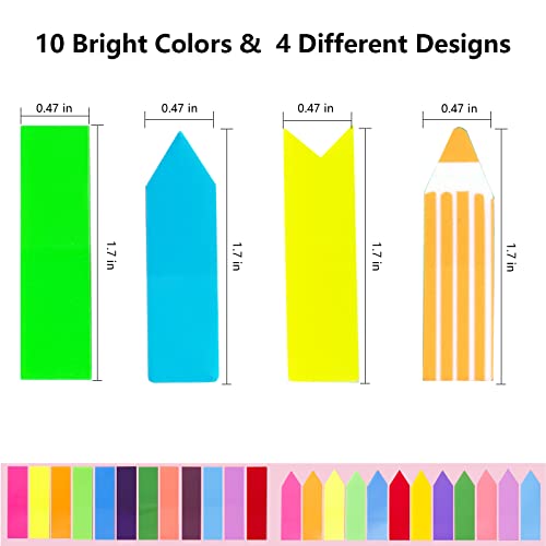 10 Colors and 4 Different Designs: colorful book tabs can help you find and locate information quickly, you can organize categories by color flexibly, 1600 pieces file flags are enough to use for a long time.