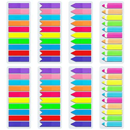 Value Packaging: 8 sets of 1600 pieces tabs for notebooks,0.47in*1.7in X 8 sets, 10 primary neon colors, 4 different designs, Simple to mark and highlight important information