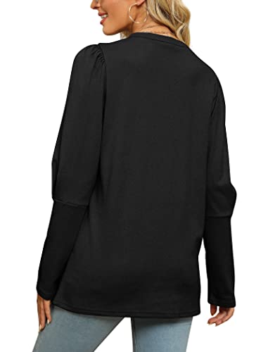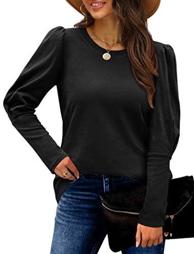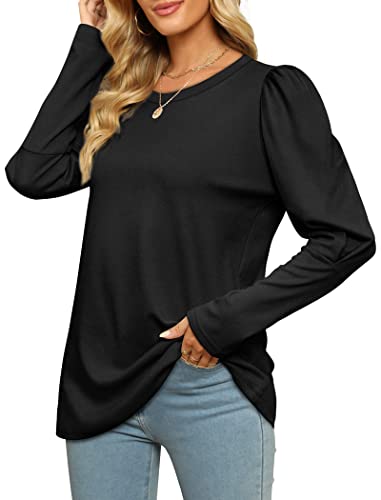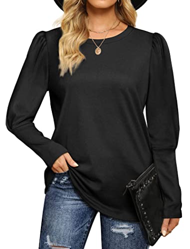 Geifa Womens Sweatshirts Crewneck Puff Sleeve Tunic Tops Lightweight Casual Sweaters
