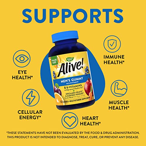 Nature’s Way Alive! Men’s Gummy Multivitamin supports heart health, eye health, immune health, muscle function, and cellular energy.*