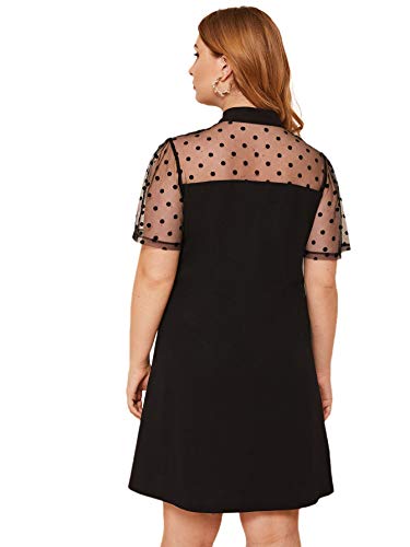 Romwe Women’s Plus Size Contrast Mesh Short Sleeve Bow Tie Neck A-Line Party Dress
