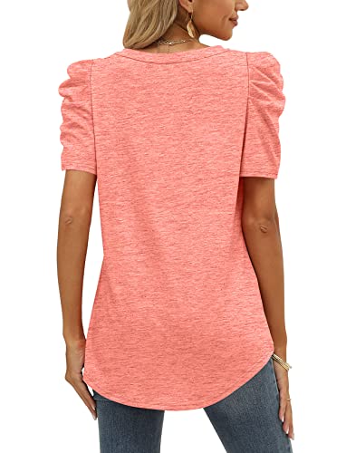 XIEERDUO Womens Summer Shirt V Neck Casual Tshirts Puff Sleeve Tops for Women Solid Color S-2XL